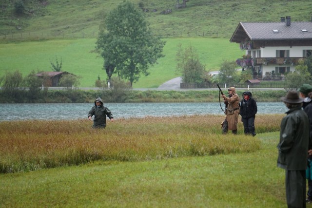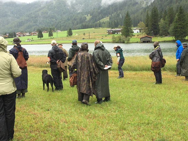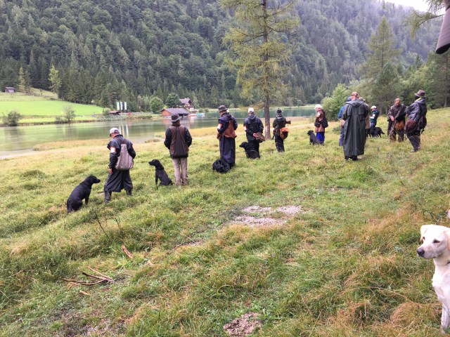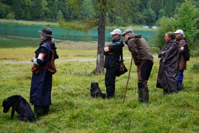 Auf dem Video von Dana Slabá sieht man den 2. Teil des Trials – das Treiben am See. Das Treiben ging recht lange. Vor uns unten am See liefen die Treiber mit ihren Hunden. Auch hinter uns im Wald liefen die Treiber. Immer wieder vielen Dummy´s in das Schilf an der Wasserkante und auf das weitläufige Gelände.