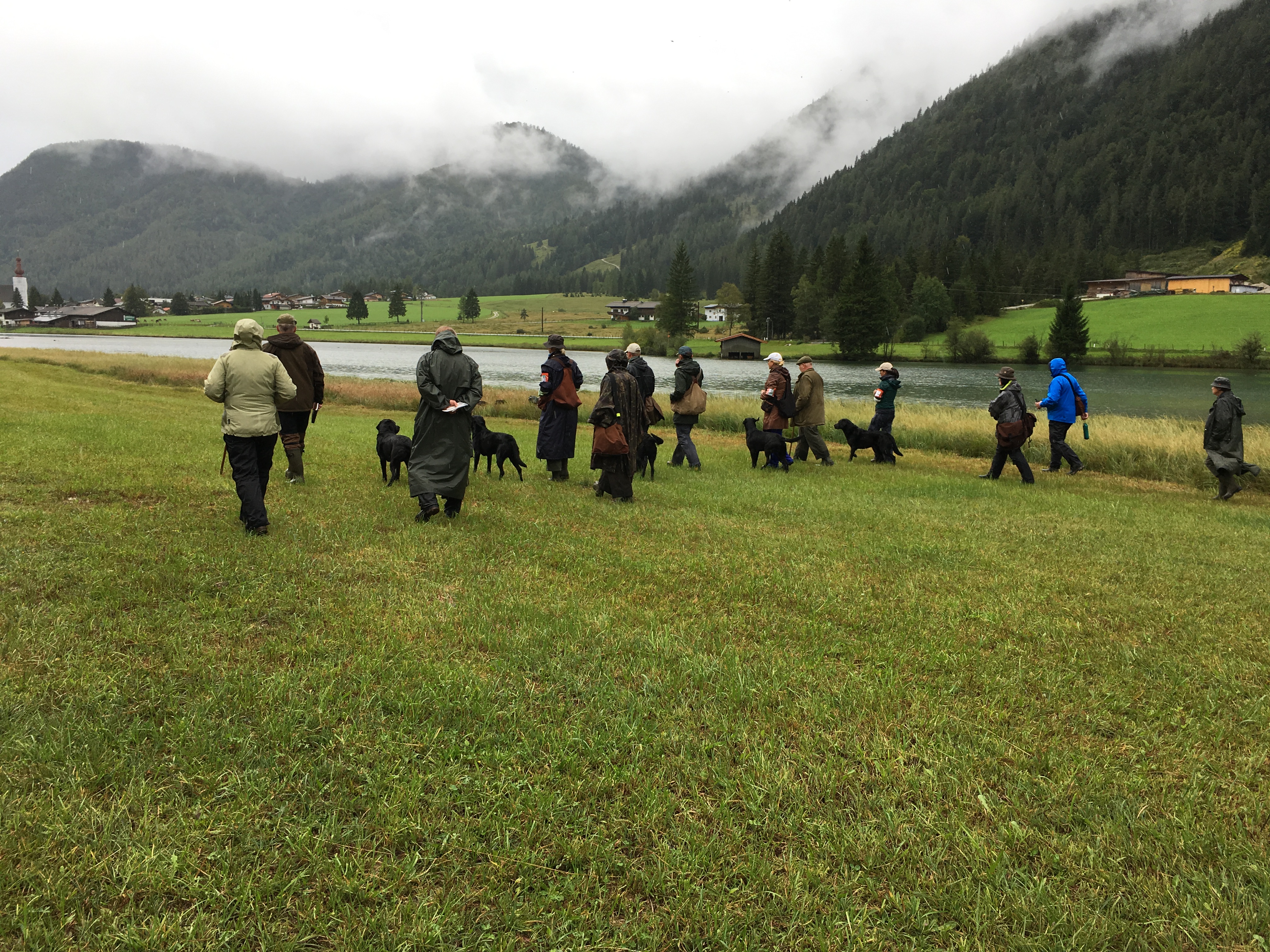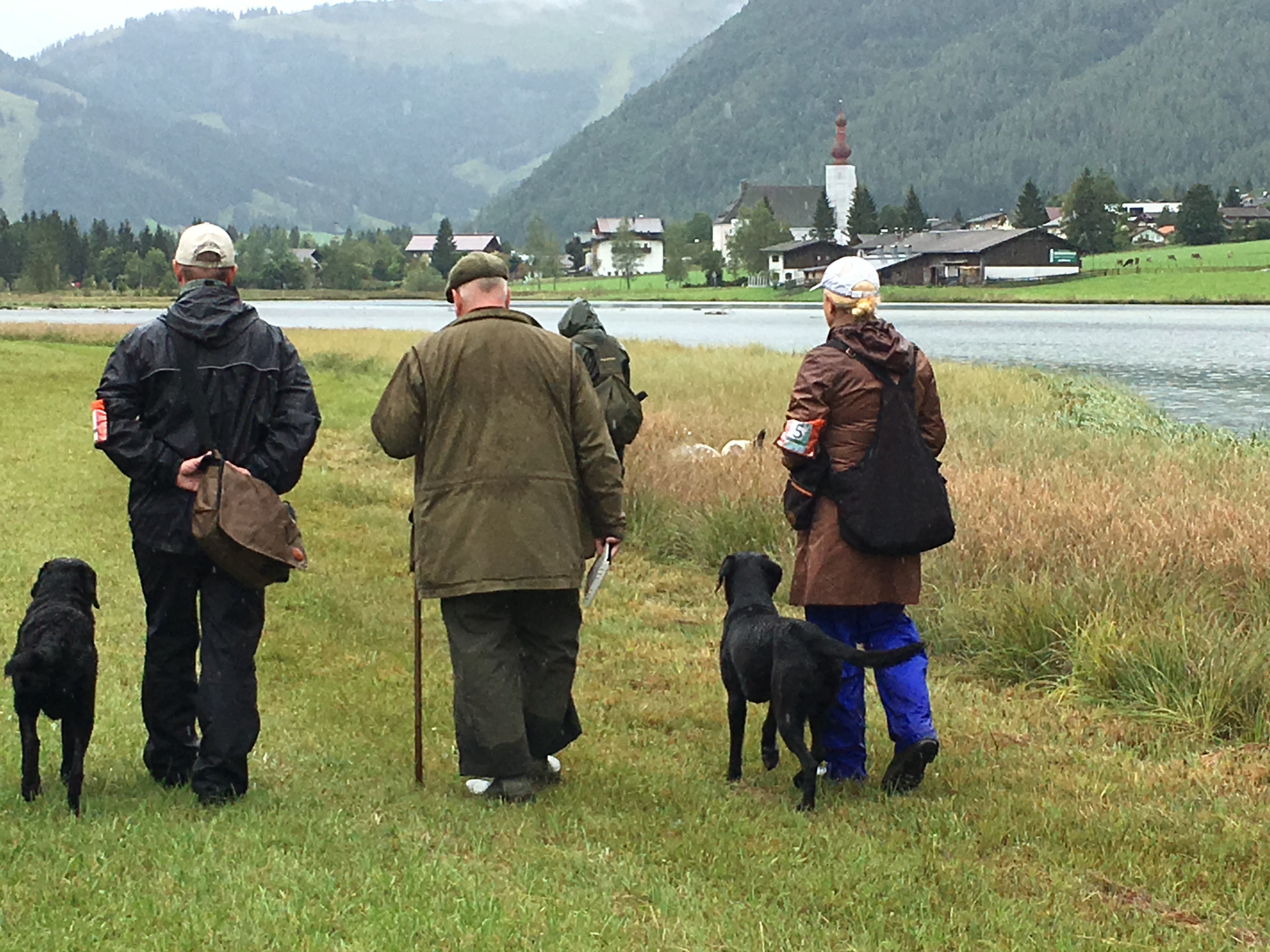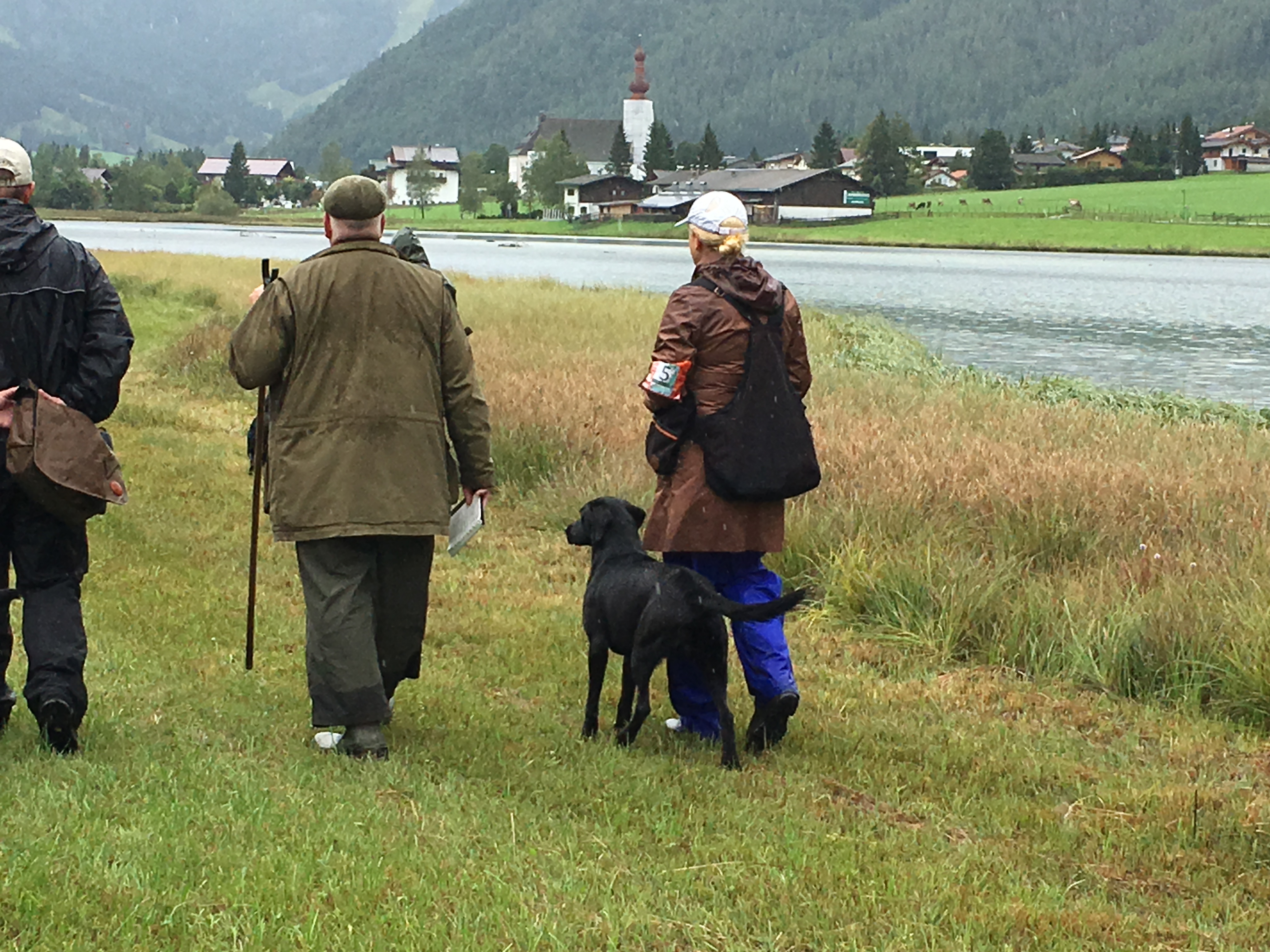 Auf dem Video von Dana Slabá sieht man den 2. Teil des Trials – das Treiben am See. Das Treiben ging recht lange. Vor uns unten am See liefen die Treiber mit ihren Hunden. Auch hinter uns im Wald liefen die Treiber. Immer wieder vielen Dummy´s in das Schilf an der Wasserkante und auf das weitläufige Gelände.