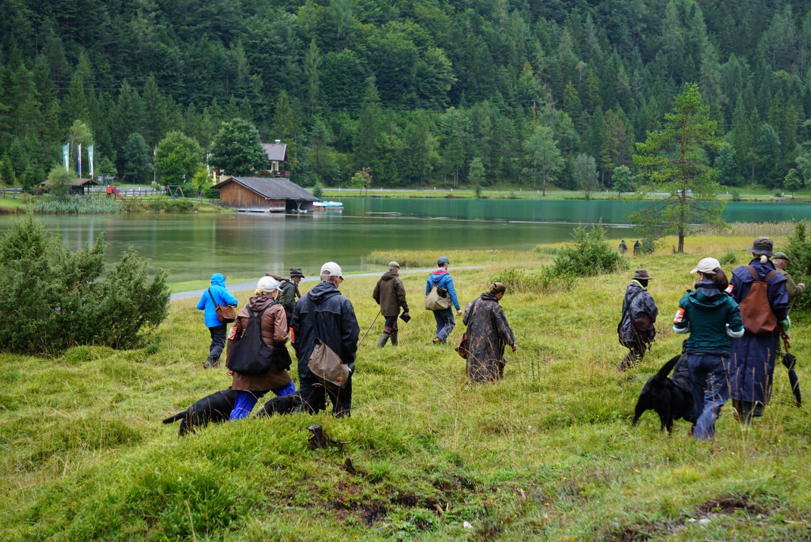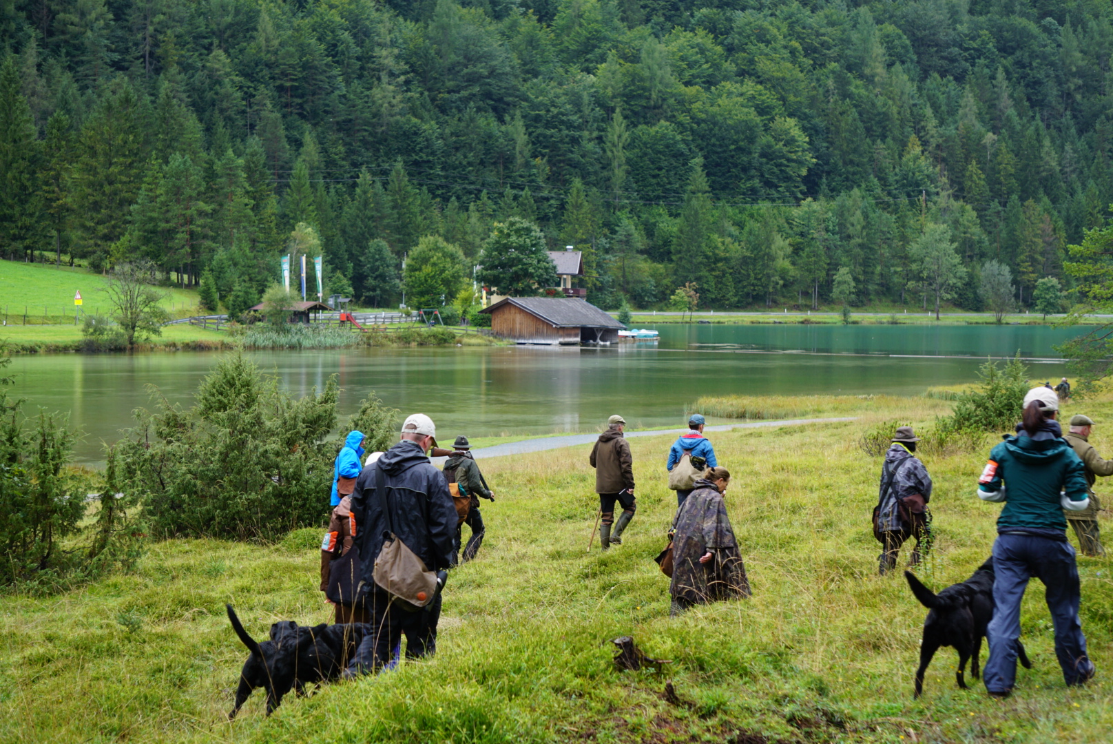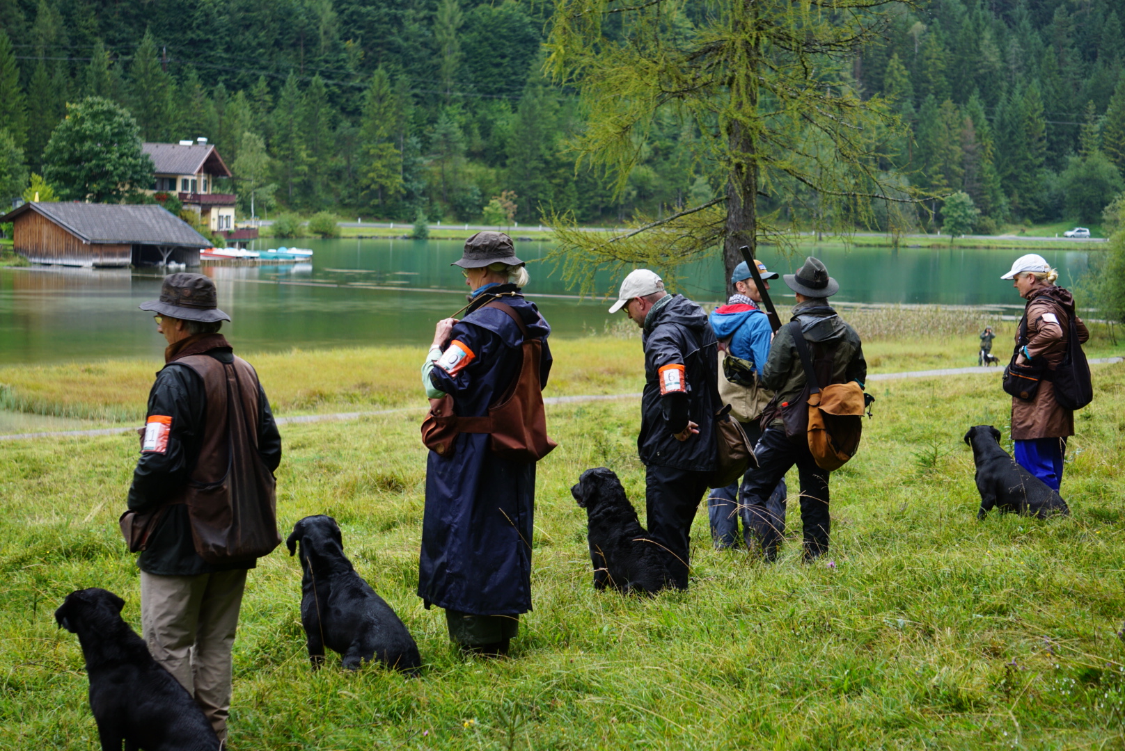 Auf dem Video von Dana Slabá sieht man den 2. Teil des Trials – das Treiben am See. Das Treiben ging recht lange. Vor uns unten am See liefen die Treiber mit ihren Hunden. Auch hinter uns im Wald liefen die Treiber. Immer wieder vielen Dummy´s in das Schilf an der Wasserkante und auf das weitläufige Gelände.